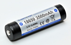 Die Li-Ionen-Akkuzelle vom Typ "18650 protected" (Nennspannung 3,7 V, Ladekapazität 3,4 Ah) enthält eine Schutzelektronik, mit der die Zelle z.B. vor Kurzschluss oder Überladung geschützt ist. Der Akku darf nur mit einem für diesen Akkutyp geeigneten Ladegerät geladen werden, z.B. Art.Nr. 4120. Abbildung ähnlich.