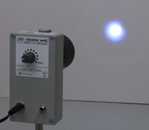 Die asphärische Kondensorlinse in der zylindrischen Fassung ist genau auf den LED-Strahler weiß (Art. Nr. 2010) abgestimmt. Es entsteht ein intensives, schmales Lichtbündel mit einem Öffnungswinkel von wenigen Grad. Zur Fokussierung des Lichtbündels z.B. in einen Spalt lässt sich die Fassung um einige Millimeter auf dem Aluminiumring der Leuchten verschieben und mittels Rändelschraube fixieren. Lieferung ohne LED-Strahler.