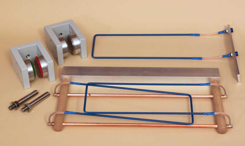 Zu diesem Experimentiersatz gehören eine Doppel- und eine Einfachleiterschaukel sowie zwei U-Magnete (einmal mit und einmal ohne farbige Polkennzeichnung). Für die U-Magnete sind passende Gewindebolzen enthalten. Mit diesem Gerätesatz kann eine ganze Reihe von Experimenten zur Kraft auf einen stromdurchflossenen Leiter und zur Induktion ausgeführt werden. Das starke Magnetfeld der Neodymmagneten lässt sich natürlich für viele weitere Zwecke nutzen. Bitte beachten Sie die Hinweise zum Umgang mit Neodymmagneten. Lieferumfang: